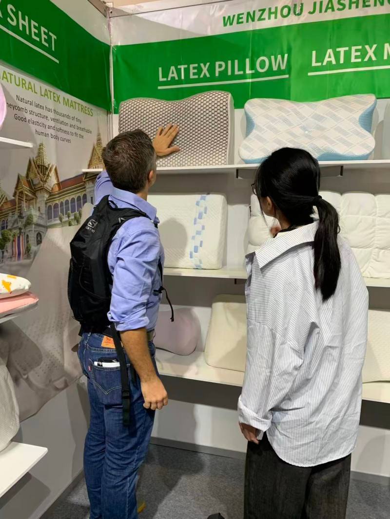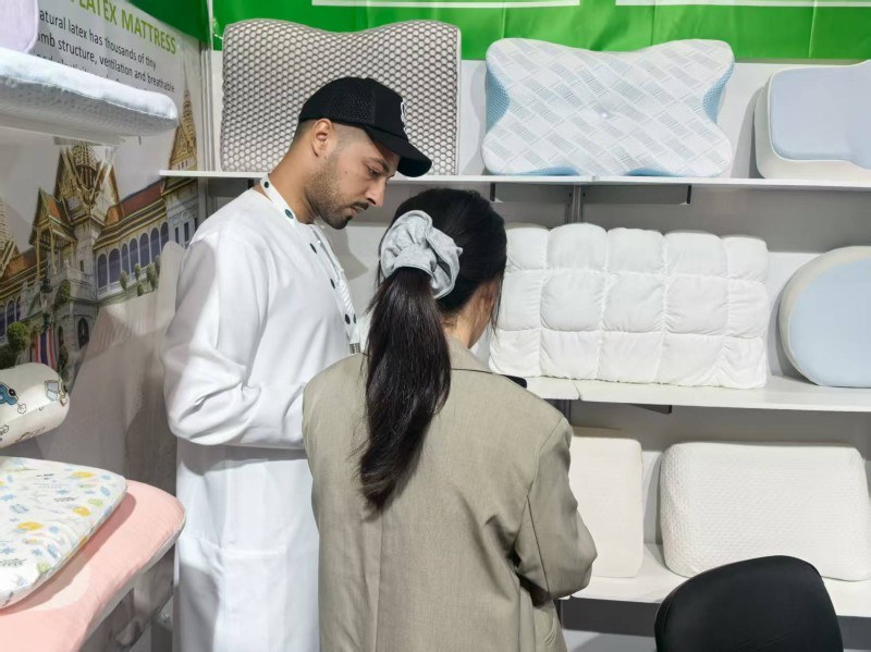 في معرض النوم بدبي، يشرفنا أن نعرض وسائدنا التي تركز على النوم للزوار من جميع أنحاء العالم. نحن ملتزمون بتقديم اثنين من الوسائد الأكثر مبيعًا في السوق:وسادة من اللاتكس الطبيعيوالمواد الذكية الحديثةوسادة رغوة الذاكرة. إن خصائص اللاتكس سريعة الارتداد والمضادة للحساسية مفضلة بشدة من قبل عشاق اللاتكس. وفي الوقت نفسه، يمكن أن يوفر الملاءمة القصوى للإسفنج الذكي نومًا عميقًا. إن تواصلنا المتعمق مع العملاء في الموقع جعلنا نشعر بسعيهم وراء الوسائد. نحن نؤمن إيمانًا راسخًا بأن توفير خيارات شخصية لعادات النوم المختلفة هو مفتاح النوم الجيد.